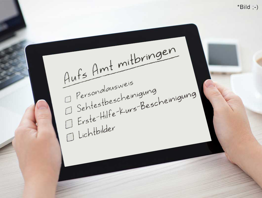 Bitte beachte: Du musst den Antrag persönlich bei der Führerscheinstelle einreichen.